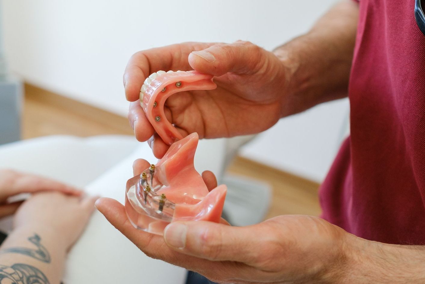 Verloren gegangene Zähne lassen sich nicht nur mittels Brücken und (Teil-) Prothesen, sondern auch durch das Einsetzen künstlicher Zahnwurzeln in den Kieferknochen ersetzen.